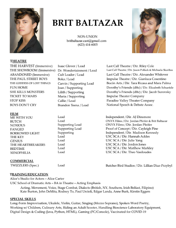 Yep! A Bachelor’s in Theatre Acting Emphasis and a Minor in Education & Society.